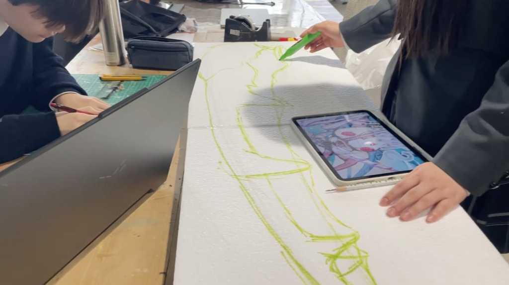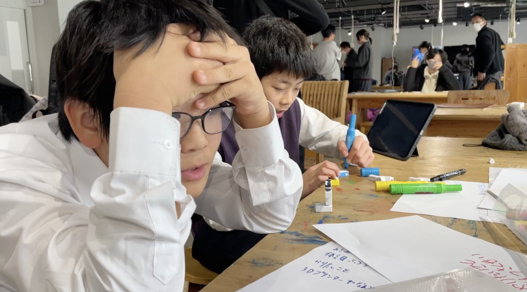 3Dに挑戦していた中1の子は、思うようにいかず手が止まっていた。