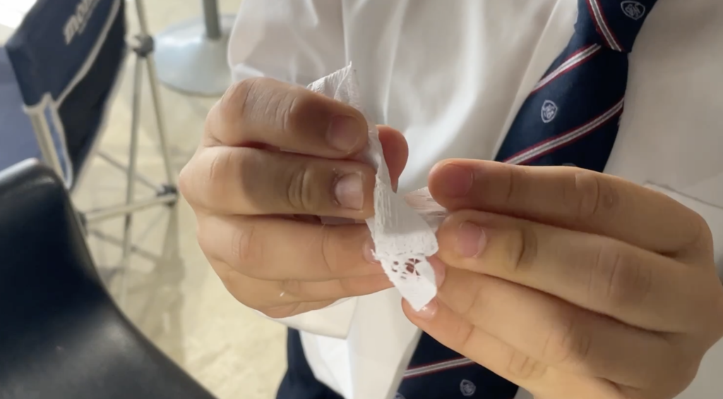 発泡スチロールで武器を作っていた子が角をきれいにしたいと言ったときも、
