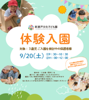 【9/20】体験入園(3歳児)のご案内です♪